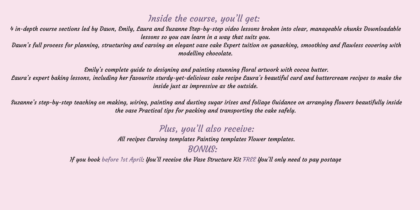 Pre - order this class BEFORE it's release on the 5th of APRIL and get a whopping £49.50 OFF THE COURSE FEE ( plus the free bonus kit if purchased before the 1st of April)