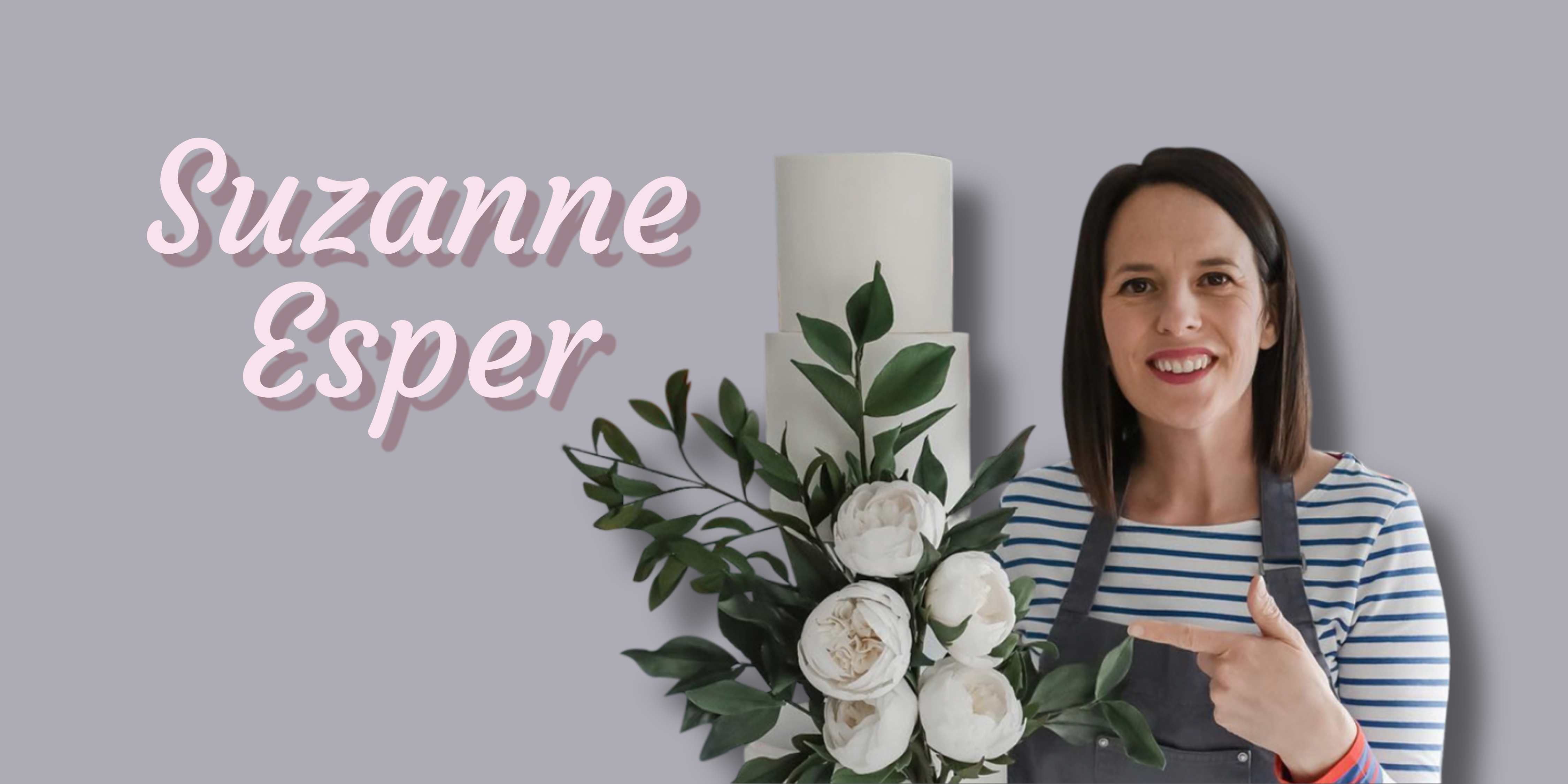 Suzanne Esper is an award-winning cake artist and tutor, best known for her elegant sugar flowers, modern cake design, and her ability to teach beautiful floral techniques in a clear and confidence-boosting way.